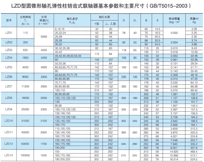 LZD型圓錐形軸孔彈性柱銷齒式聯(lián)軸器