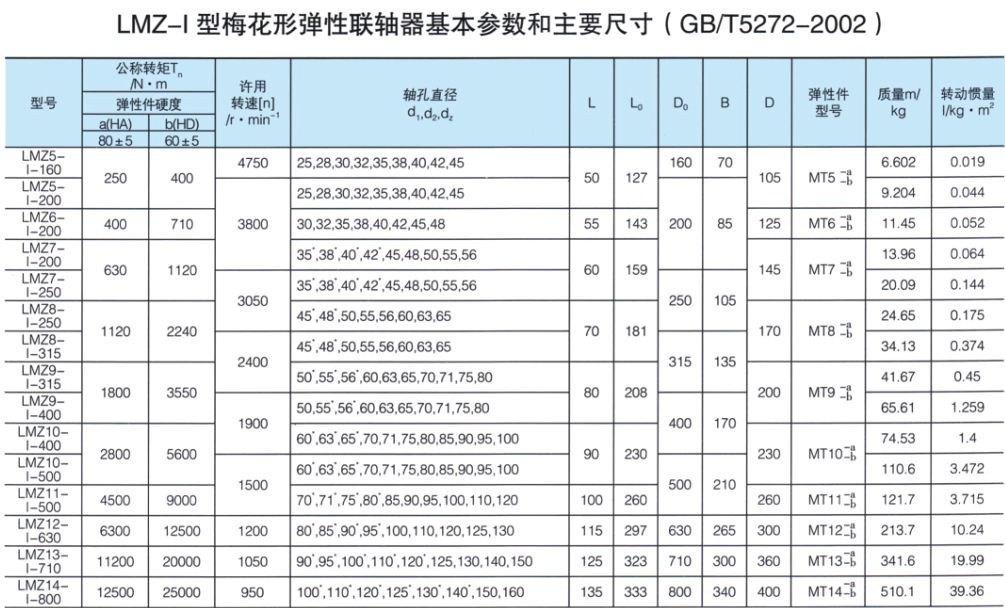 LMZ-I 型梅花形彈性聯(lián)軸器